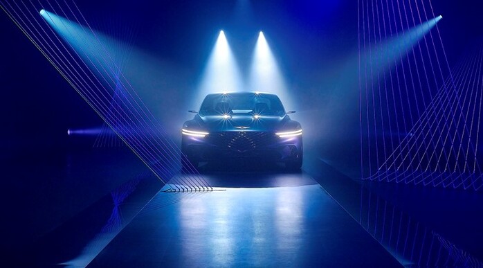 제네시스는 로드쇼에서 ‘연결’의 의미를 선을 통해 제네시스 엑스 전시 공간을 입체적으로 연출했다. 또한 조명과 음향 효과를 활용한 미디어아트로 디자인 방향성을 표현한다.