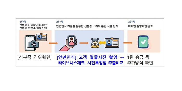 | ▲ 신분증 제출 시 안면인식 활용 비대면 실명확인 프로세스. [이미지=금융결제원] |