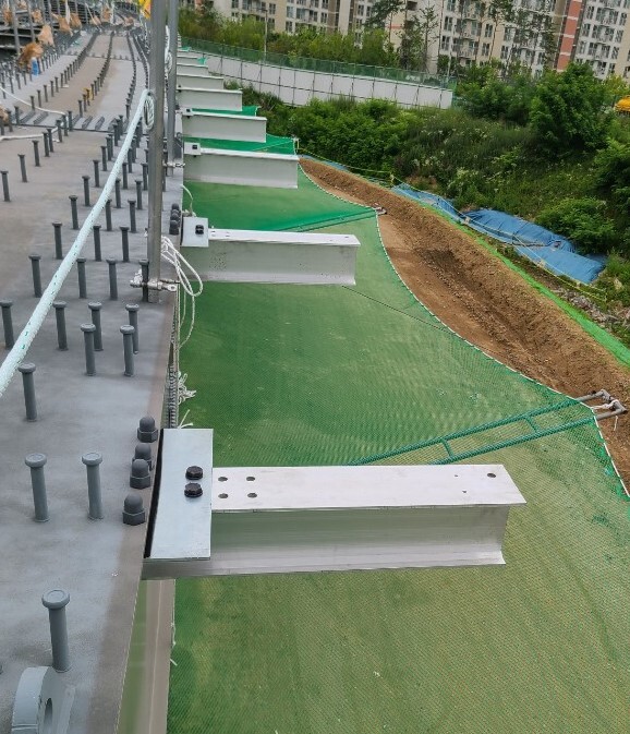 ▲ 캔틸레버부에 BBCM공법으로 설치한 탈착식 브라켓의 모습 [사진= 롯데건설] |