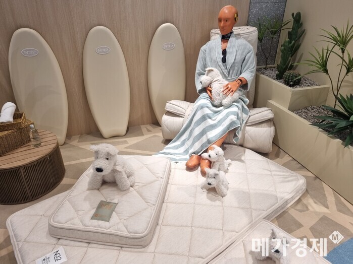 한편 현장에서는 매트리스를 체험한 뒤 SNS 인증을 완료한 방문객을 위한 이벤트도 진행 중이다. 참여자에게는 N32 로고가 새겨진 유리병 생수가 제공된다. 주말 오후 3시에는 럭키드로우 이벤트를 통해 반려견용 매트리스와 장우산 등을 증정한다.