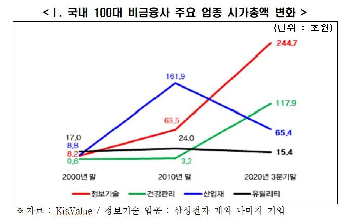 헬스케어 3.2조→117.9조원, IT 203.3조→592.1조 시총 증가 커