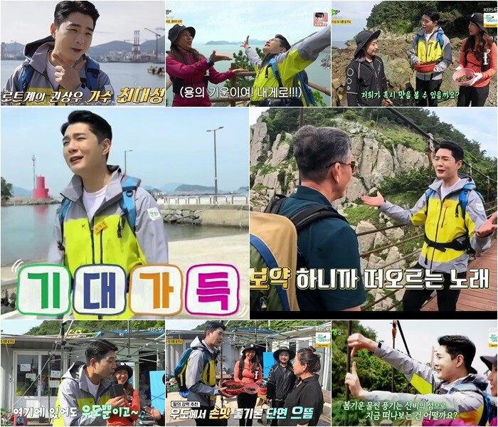 특히 연화도의 비경인 ‘연화봉’, ‘용머리 바위’ 등을 소개했으며, 바다 위에 떠 있는 아찔한 출렁다리도 무서운 정신력으로 극복해 건너가 미미로부터 칭찬을 받았다. 또한 시민들과도 적극 소통하며 인터뷰를 시도했다. 인터뷰 중 한 시민이 “연화도에 오니 보약 열 첩 먹은 것보다 좋다”라고 하자, 그는 즉석에서 ‘보약 같은 친구’를 열창하기도 했다.