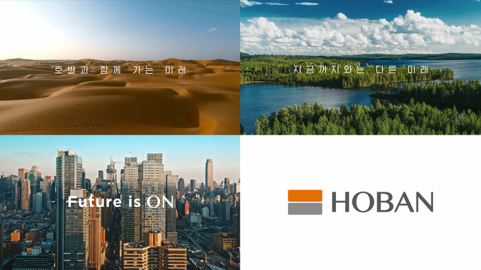 광고는 ‘퓨처 이즈 온’이라는 문구와 호반의 CI로 마무리된다. ‘퓨처 이즈 온’은 ‘HOBAN’의 ‘O’와 ‘N’을 연결해 표현한 슬로건이다.