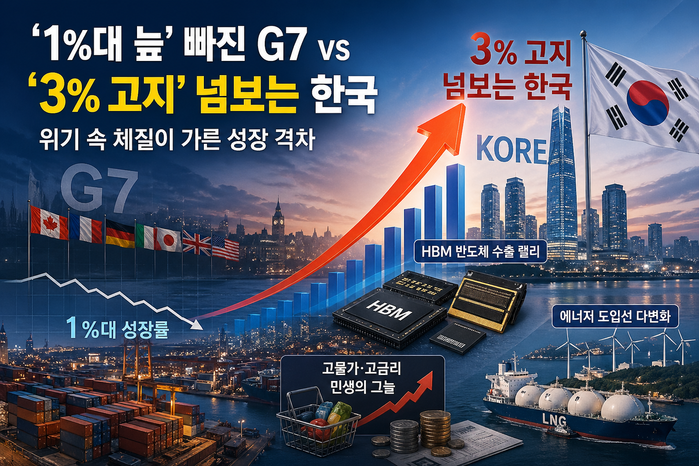 [메가경제=박성태 기자] 2026년 봄, 글로벌 경제 지형도는 거대한 ‘디커플링(비동조화)’의 시대로 진입하고 있다. 세계 경제의 축인 주요 7개국(G7)이 고금리의 덫과 중동발 지정학적 리스크에 발목이 잡혀 1%대 저성장의 늪에서 허덕이는 사이, 대한민국 경제만이 홀로 탄력적인 회복세를 보이며 선진국 그룹 중 가장 가파른 우상향 곡선을 그려내고 있다.