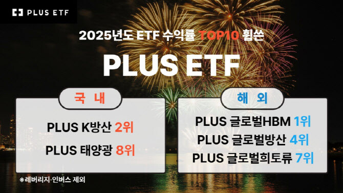 금융정보업체 에프엔가이드 집계에 따르면 2025년 국내·해외 각각 수익률 상위 10개 ETF 가운데 PLUS ETF가 총 5개(국내 2개, 해외 3개) 포함됐다.