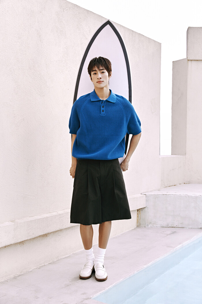 또 유틸리티 무드를 살린 셔츠와 반바지 셋업 착장을 선보였다. 반소매 포켓 셔츠와 카고 반바지를 조합하여 색다른 스타일링을 제안했다.