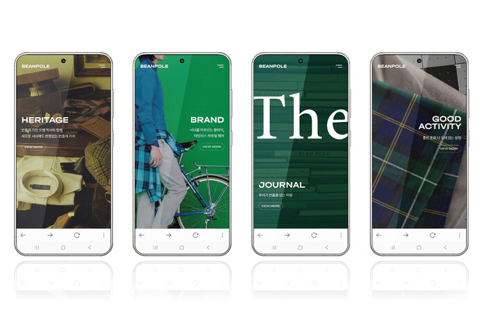 빈폴은 홈페이지를 ‘헤리티지(Heritage)’, ‘브랜드(Brands)’, ‘저널(Journal)’, ‘굿 액티비티(Good Activity)’ 등으로 구조화해 접근성과 편의성을 높였다.
