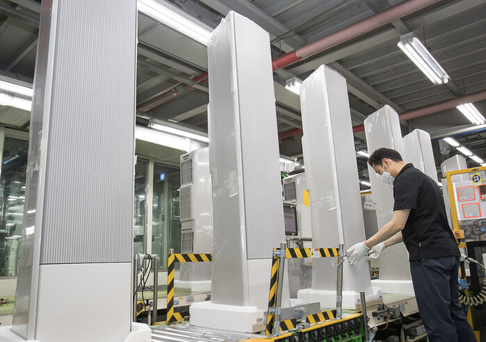 | ▲ 광주광역시 광산구 하남산단 6번로에 위치한 삼성전자 광주사업장에서 직원들이 '비스포크 무풍에어컨 갤러리'를 생산하는 모습. [사진=삼성전자 제공] |