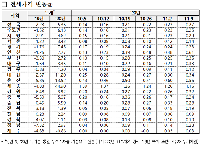 | ▲ 전세가격 변동률. [출처= 한국감정원] |