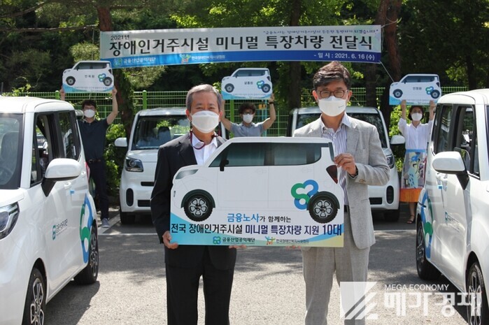 금융산업공익재단(대표이사장 신상훈)은 6월 16일 안산시 소재 사회복지법인 명휘원에서 한국장애인복지시설협회(회장 정석왕) 산하 10개 장애인거주시설에 미니멀 특장차량 10대를 직접 전달했다.