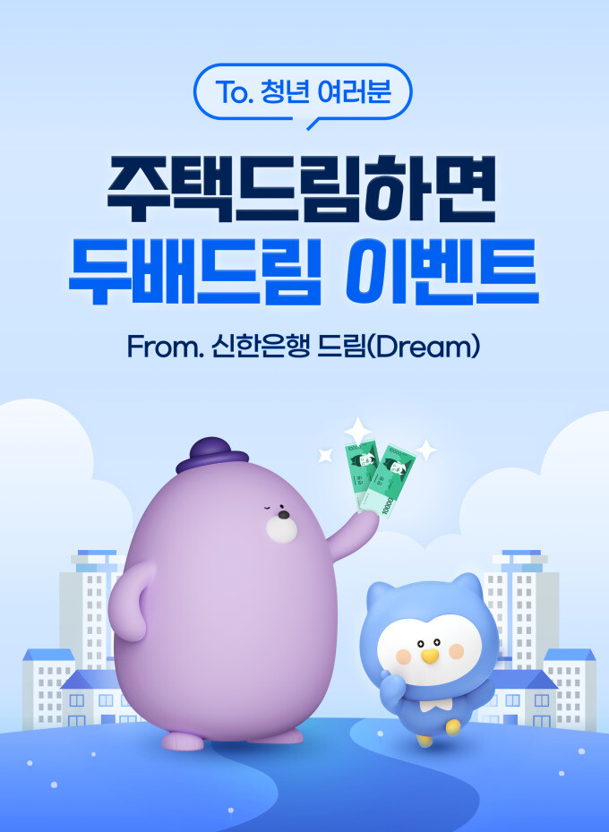 [메가경제=문혜원 기자] 신한은행은 청년 주택드림 청약통장 출시를 기념해 '주택드림하면 두배드림' 이벤트를 시행한다고 11일 밝혔다.