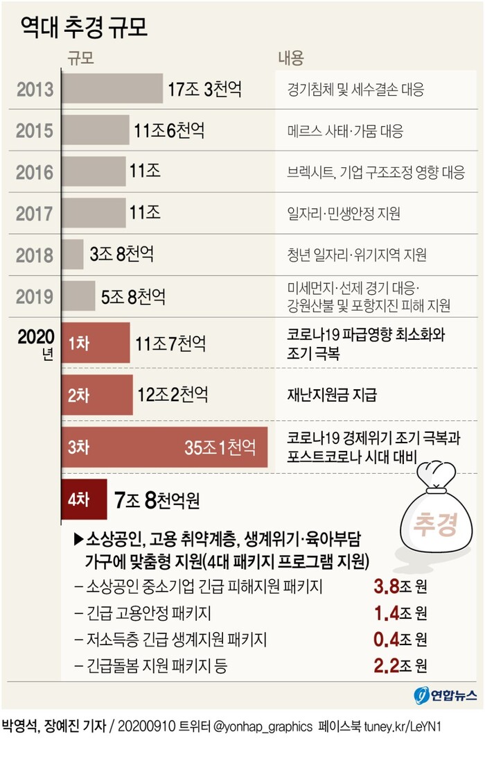 ▲ 역대 추경 규모. [그래픽= 연합뉴스] |