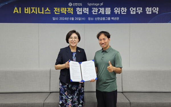 [메가경제=문혜원 기자] 신한금융의 ICT 전문기업인 신한DS는 금융특화 서비스 구축과 다양한 AI 서비스 공동발굴을 위해 업스테이지와 업무협약(MOU)을 체결했다고 26일 밝혔다.