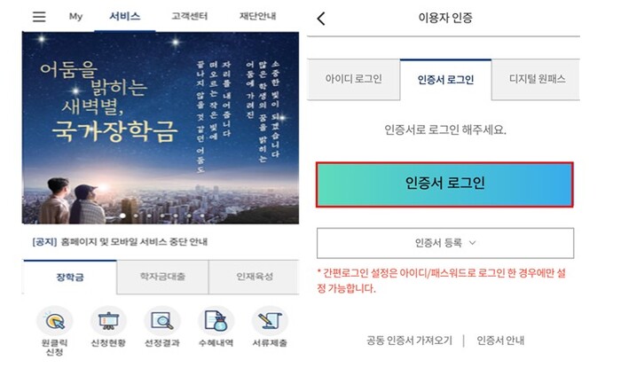 국가장학금 신청뿐만 아니라 학자금 대출이나 국가 근로장학금 신청 등 한국장학재단의 다른 모든 서비스도 금융인증서로 간편하게 이용할 수 있다.