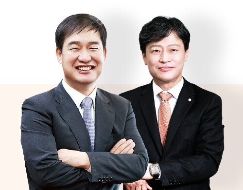 ▲ 유창수 부회장(왼쪽), 고경모 사장. [사진=유진투자증권] |
