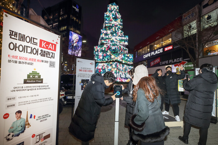 [메가경제=이동훈 기자] KT(대표이사 김영섭)가 서울 신촌 거리에 11미터 크기의 초대형 미디어 트리를 설치하고 고객이 제안한 일상 속 AI 아이디어를 광고로 만들어 송출하는 ‘팬메이드 K-AI 아이디어 챌린지’ 오프라인 팝업을 1월 5일까지 운영한다고 밝혔다.