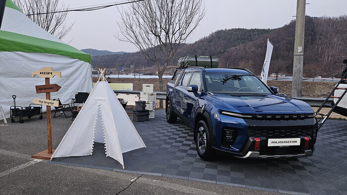 KGM은 캠핑 장비와 레저 용품을 활용한 아웃도어 콘셉트 전시 부스를 마련하고 픽업 모델 ‘무쏘’와 ‘무쏘 EV’를 선보였다. 데크 공간에 아웃도어 용품을 적재해 실제 활용 장면을 연출하며 픽업 차량의 실용성을 강조했다.