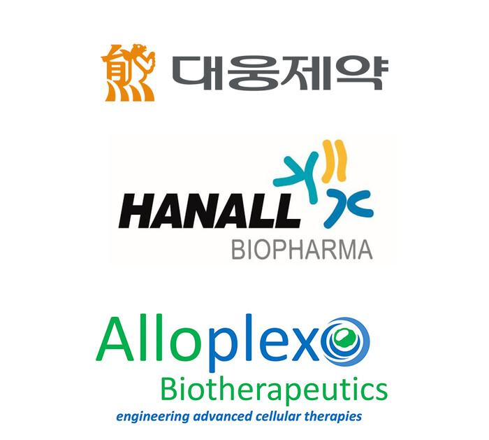 | ▲ 위에서부터 대웅제약, 한올바이오파마, 알로플렉스사 CI [대웅제약 제공] |