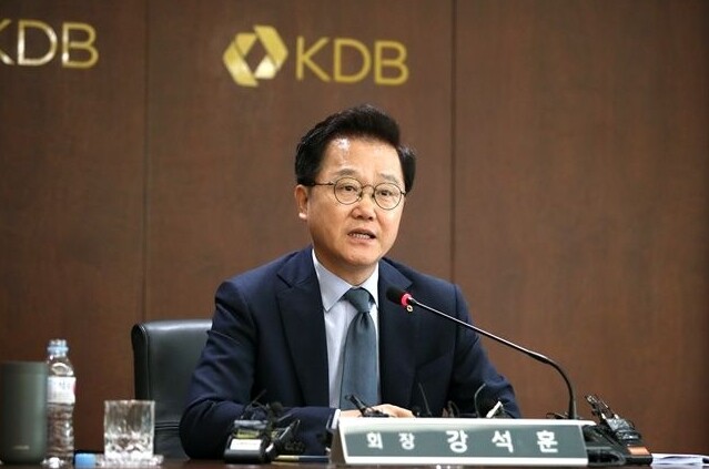 ▲강석훈 KDB산업은행 회장이 지난 20일 서울 여의도 KDB산업은행 본점에서 취임 1주년 기자간담회를 갖고 있다. [사진=산업은행]