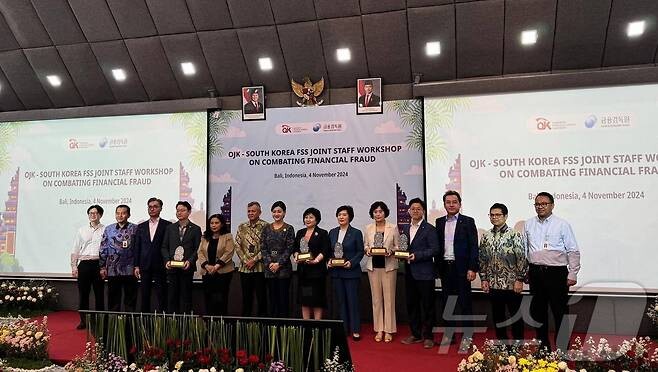 | ▲지난 4일 인도네시아 발리에서 진행된 한국 금융감독원(FSS)·인도네시아 금융감독청(OJK) 공동 주최, 「금융사기 방지 및 금융 이해력 향상 워크샵」에서 한화생명 융자Digital사업부 장종명 팀장(오른쪽에서 네번째), 금융감독원 김미영 금융소비자보호처장(오른쪽에서 일곱번째) 인도네시아 금융감독청 프리데리카 위디야사리 데위 소비자보호 담당 최고 책임자(오른쪽에서 여덟번째) 및 관계자들이 기념 촬영을 하고 있다. [사진=한화생명 제공] |