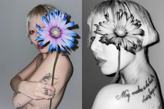 해당 사진 속에는 그는 금발의 쇼트커트를 한 채, 큰 꽃을 들고서는 카메라를 응시했다. 특히 몸 곳곳에 새겨져 있는 대형 타투들이 눈길을 사로잡았다. 이 외에도 현아는 꽃을 주제로 한 다양한 화보컷으로 농염한 매력을 발산했다.