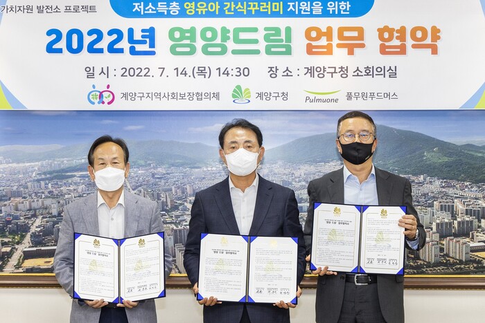 식자재 유통 전문기업 풀무원푸드머스는 인천광역시 계양구청, 계양구지역사회보장협의체와 '영양 드림' 사업 추진을 위한 업무협약(MOU)을 체결했다고 15일 밝혔다.