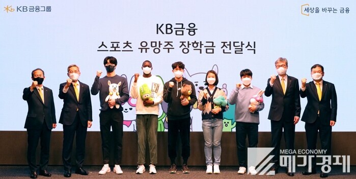 [메가경제=황동현 기자] KB금융그룹(회장 윤종규)은 KB국민은행 여의도 신관에서 'KB금융 스포츠 유망주 장학금 전달식' 행사를 진행했다고 22일 밝혔다. 이 자리에는 꿈과 목표에 도전하는 유망주들과 KB금융그룹 윤종규 회장, 양종희 부회장, 허인 은행장이 참석했다.