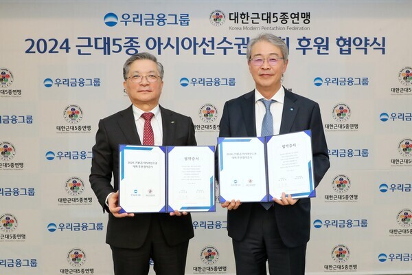 우리금융은 앞서 지난 3일 우리금융그룹 본사에서 임종룡 회장과 대한근대5종연맹 이한준 회장, 전웅태, 김선우, 신수민 선수 등이 참석한 가운데 후원 협약식을 진행했다.