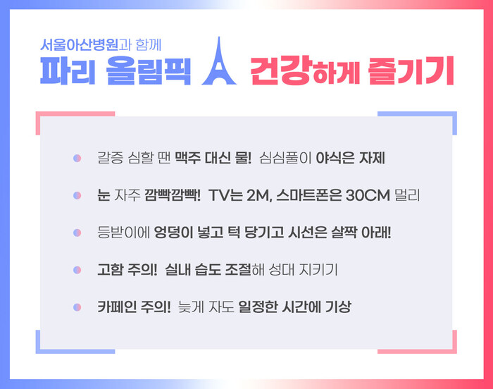 | ▲ 파리올림픽 건강하게 즐기는 법 [사진=서울아산병원] |