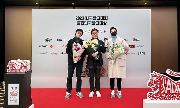 | ▲ 2023 대한민국광고대상 시상식. 박영주 컴투스 마케팅&컨텐츠 센터장(가운데). [사진=컴투스] |