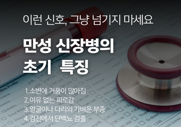 만성 콩팥병은 초기 단계에서 일상생활에 영향을 주는 증상이 거의 없어 방치되기 쉽지만, 뒤늦게 발견될 경우 이미 신장 기능이 상당 부분 저하된 상태인 사례가 많다.