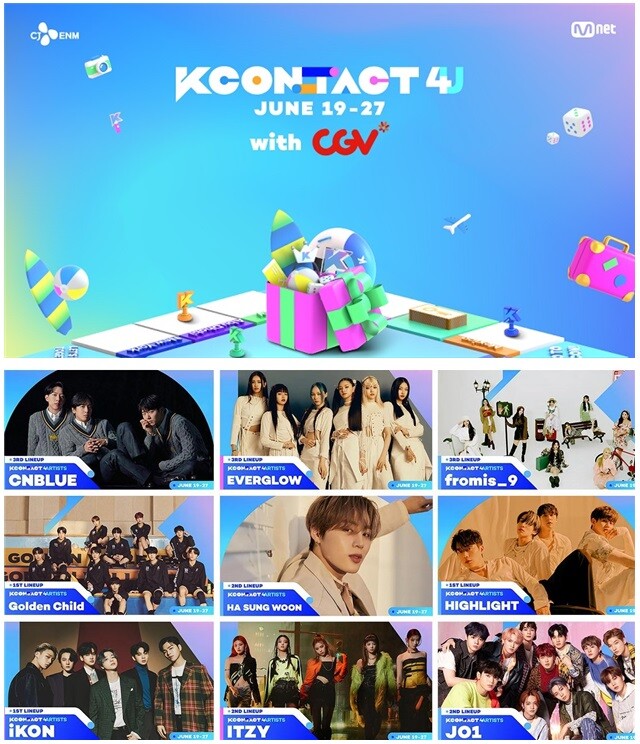 CGV가 오는 19일부터 27일까지 비대면으로 개최되는 'KCON:TACT 4 U(이하 케이콘택트포유)'를 극장에서 생중계한다고 11일 밝혔다.