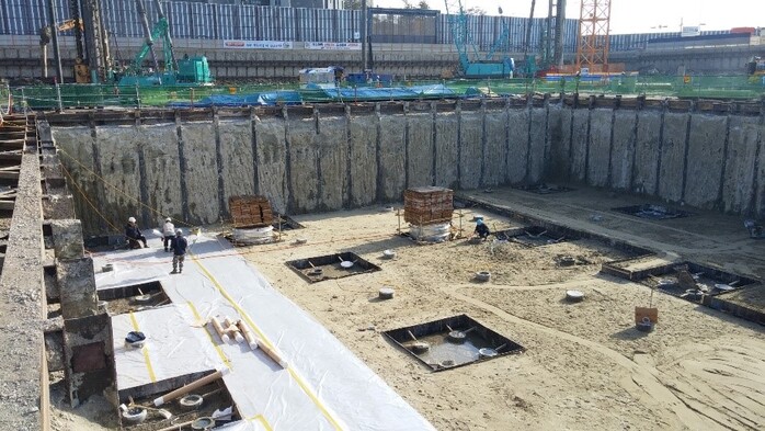 | ▲ 공사현장에 BSCW공법으로 시공한 흙막이 벽체 [사진=포스코건설 제공] |