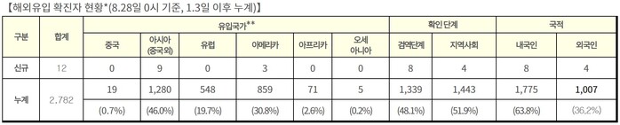 ▲ 28일 0시 코로나19 해외유입 확진자 현황.[출처= 중앙방역대책본부] |