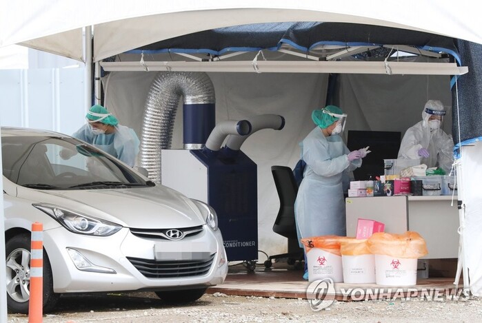 ▲ 오전 서울 강서구 마곡 이대서울병원 코로나19 드라이브 스루 선별진료소에서 의료진이 검체 채취를 하고 있다.[서울= 연합뉴스] |
