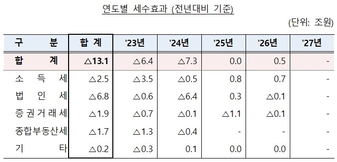 ▲ 연도별 세수효과. [기획재정부 제공] |