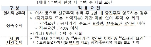 ▲ 1세대 1주택 판정 시 주택 수 제외 요건. [기획재정부 제공] |