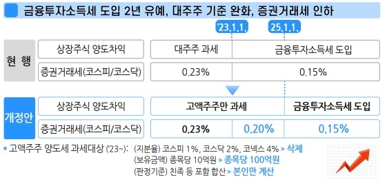 ◆ 주식양도소득세 100억 이상 대주주 개인별 과세…증권거래세 0.23→0.15%