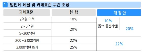 ▲ 법인세 세율 및 과세표준 구간 조정. [기획재정부 제공] |