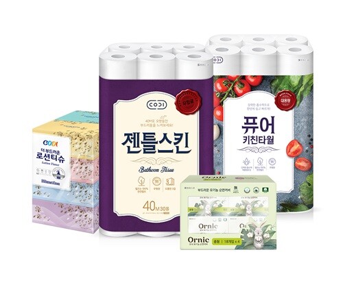 행사 기간 동안, 도톰한 3겹의 데코 엠보싱으로 흡수력이 뛰어난 ‘코디 젠틀스킨 3겹 화장지’와 아르간 오일에센스 로션을 함유해 먼지 날림이 적은 ‘코디 놀랄만큼 부드러운 로션티슈’, 독일 피부과학연구소 더마테스트에서 ‘엑설런트’ 등급을 획득하고 형광증백제와 인공향·색소를 배제해 피부 저자극성을 확인 받은 ‘코디 뉴플라워 미용티슈’를 할인 판매한다.