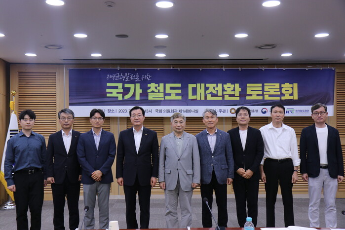 | ▲‘지역균형발전을 위한 국가 철도 대전환’토론회 참석한 주요 관계자들 |