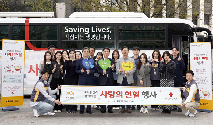 행사 기간 동안 대한적십자사 헌혈버스가 여의도 본사 앞에 상시 운영됐으며, KB증권 임직원뿐 아니라 같은 사옥에 근무하는 한국교직원공제회 직원들도 함께 참여해 총 120명이 헌혈에 동참했다.