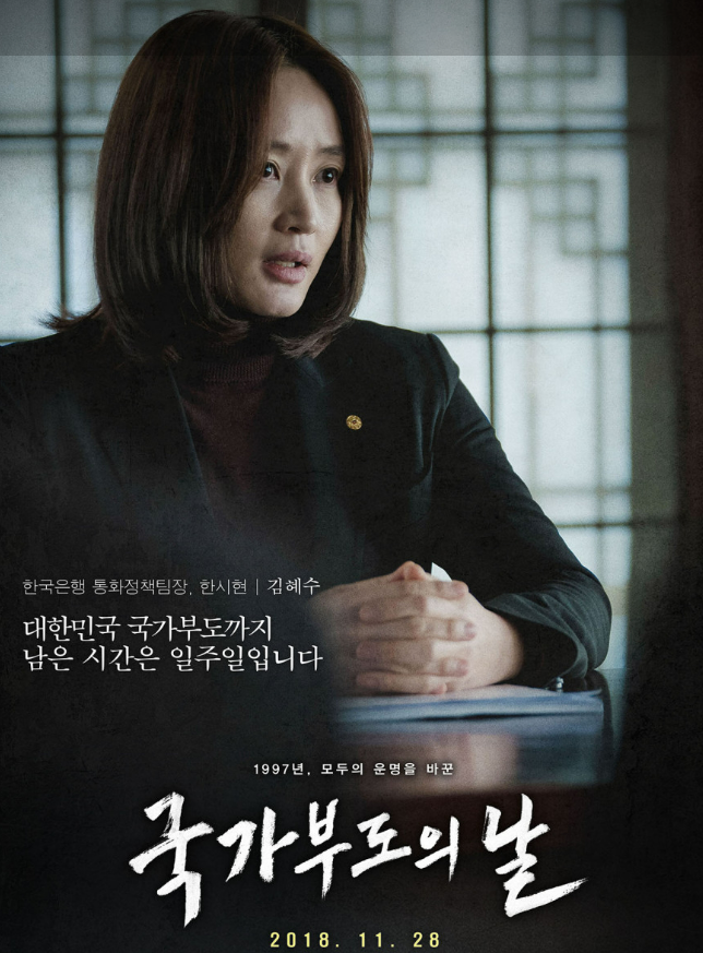 영화 ‘국가부도의 날’은 1997년 외환 위기를 배경으로, 당시 한국 경제의 위기를 생생하게 그려냈다. ‘인생의 아름다워’의 최국희 감독이 메가폰을 잡고, 김혜수 (한시현 역), 허준호 (갑수 역), 조우진 (재정국 차관 역) 그리고 뱅상카셀(IMF 총재 역)이 출연해 화제를 모았다.