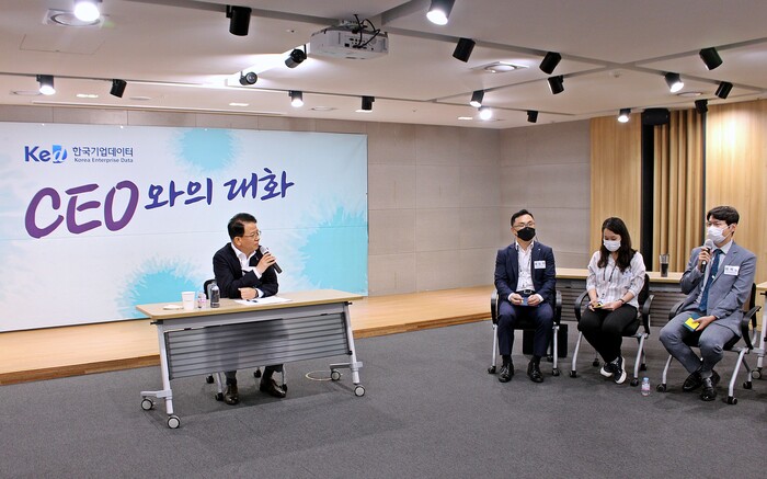 한국기업데이터는 "참여하는 직원들의 태도도 매우 적극적"이라고 밝혔다. 이 대표의 취미생활이나 재테크비법부터 향후 회사 운영방향과 신규 사업게획 등을 포함한 지속가능한 회사 발전전략, 인사원칙에 이르기까지 다양한 질문이 쏟아졌다.