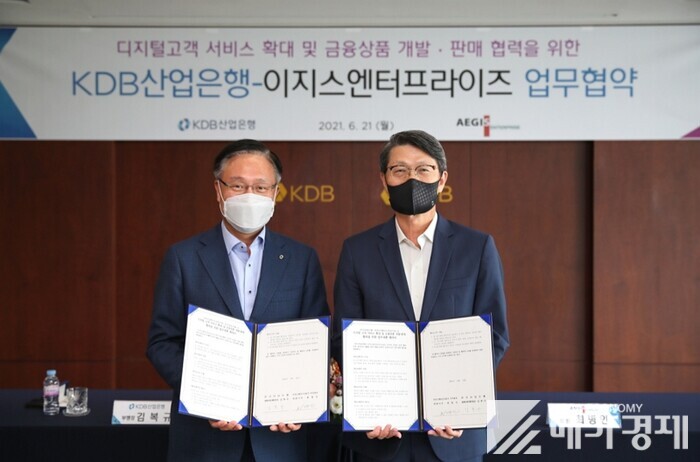산업은행은 지난 21일 본점에서 이지스엔터프라이즈와 '디지털 고객 서비스 확대 및 금융상품 개발·판매 협력'을 위한 업무협약을 체결했다고 밝혔다.