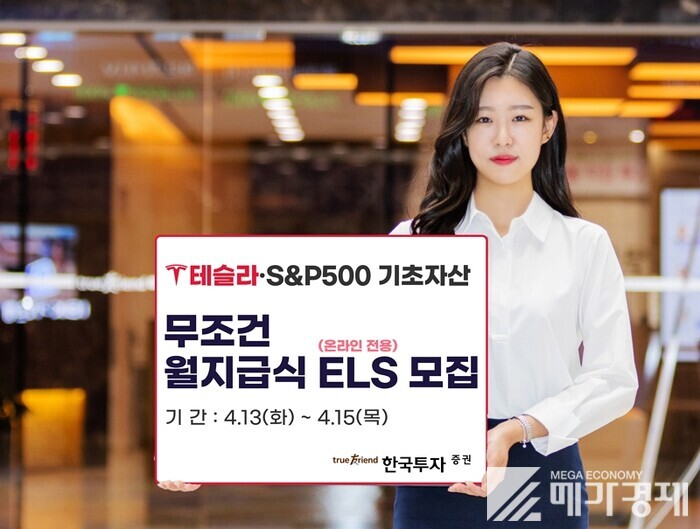 ▲ 한국투자증권(사장 정일문)은 미국 주식 종목 테슬라와 S&P500을 기초자산으로 하는 온라인 전용 TRUE ELS 14002회 투자자를 모집한다. [사진=한국투자증권 제공] |