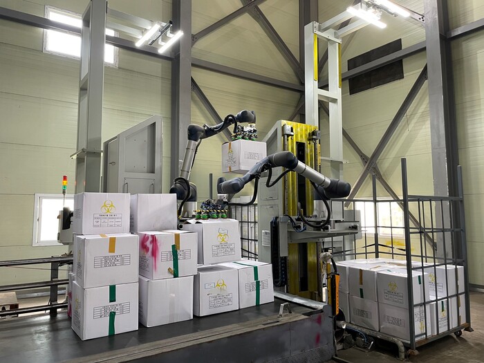 ▲SK에코플랜트 의료폐기물 소각장 로보틱스 실증 모습. [사진=SK에코플랜트] |