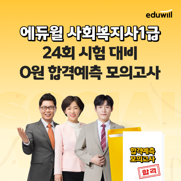[메가경제=이상원 기자] 국민교육기업 에듀윌은 다가오는 제24회 사회복지사 1급 시험을 앞둔 수험생과 2027년 시험을 미리 준비하는 예비 수험생 모두를 위한 맞춤형 이벤트를 동시 진행한다고 8일 밝혔다.