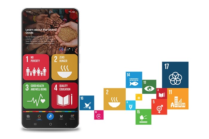 삼성 글로벌골즈 앱은 삼성전자와 유엔개발계획(UNDP)이 파트너십을 맺어 앱 사용자들이 양질의 교육, 기후 변화 대응, 깨끗한 바다 만들기 등 17개의 지속가능개발목표 달성을 위해 참여할 수 있도록 개발한 플랫폼이다.
