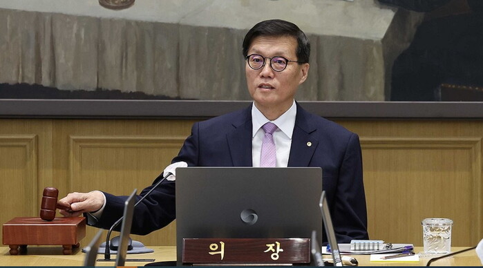 | ▲ 이창용 한국은행 총재가 11일 서울 중구 한국은행에서 열린 금융통화위원회에서 의사봉을 두드리고 있다. [사진=연합뉴스] |